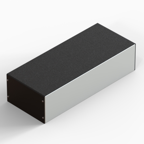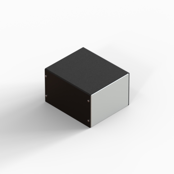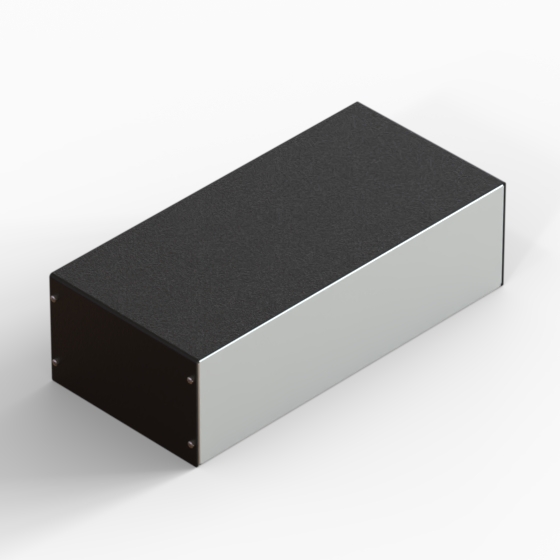 Aluminiumgehäuse mit silberfarbenen Unterteil und schwarzem Deckel. Einfache und schnelle Montage durch vier Schrauben. Das Modell 424.18 ist auf Anfrage erhältlich.