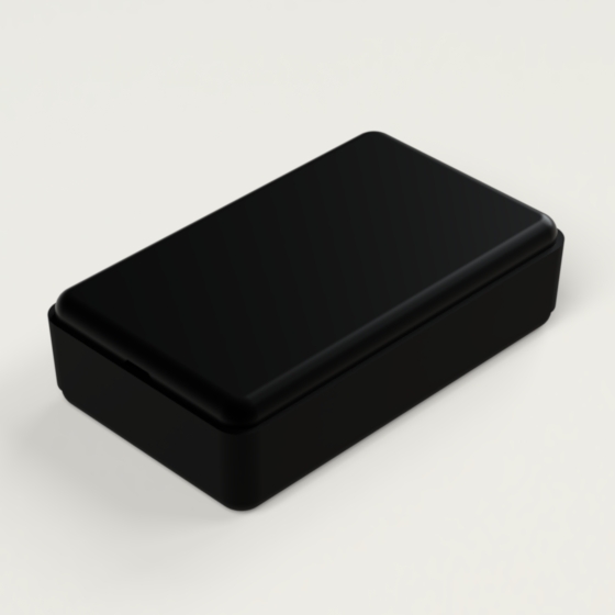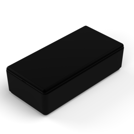 Kunststoffgehäuse mit abgerundeten Ecken. Die Modelle „10011“, „10012-B“ und „10013-B“ werden mit einer Schraube montiert. Das Modell „10012-B“ besitzt ein Fach für eine 9V-Batterie, während das Modell „10013-B“ über ein Fach für zwei 9V Batterien verfügt. Matte Oberfläche.