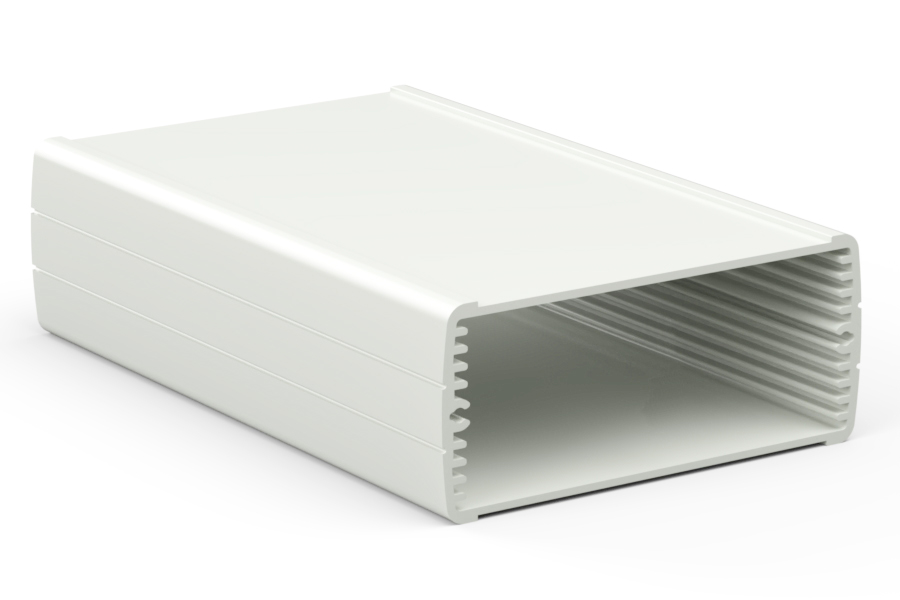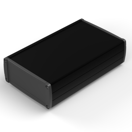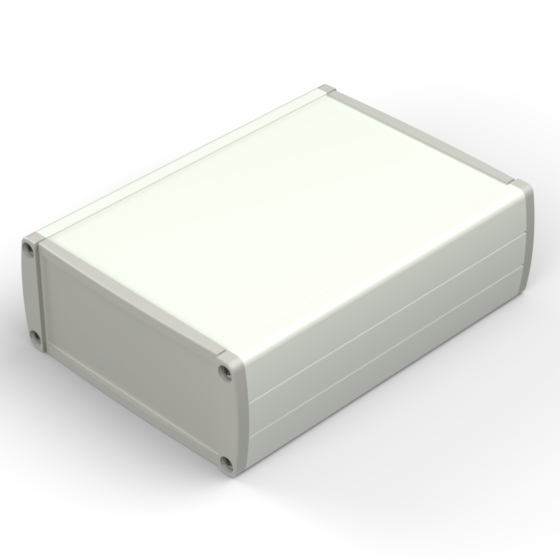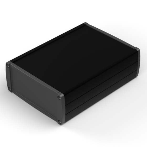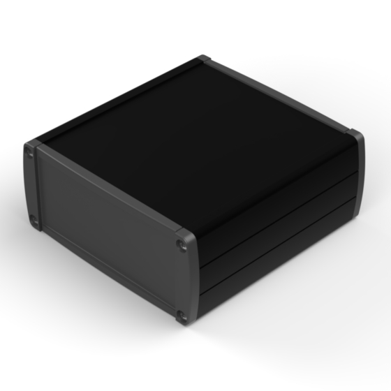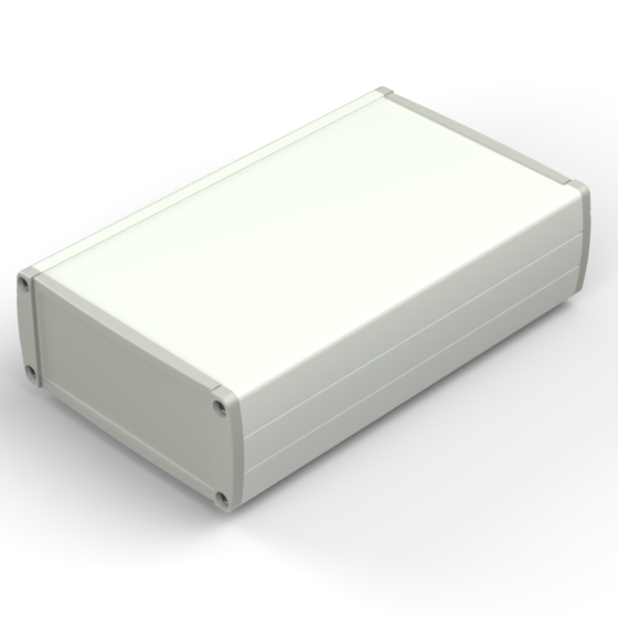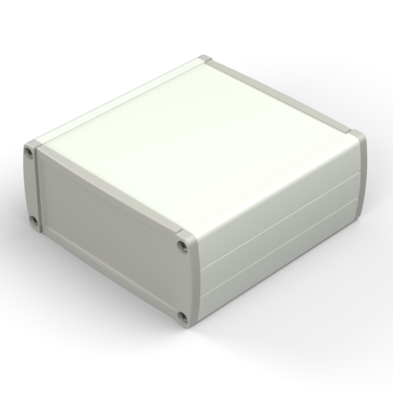 Boîtier en aluminium extrudé avec une haute qualité du finissage extérieur. Deux couvercles en ABS, guides internes pour PCB et partie supérieure avec décrochement pour clavier à membrane. Six modèles à disposition avec dimensions différentes. Les modèles référencés «-E» ont des panneaux pour la fixation murale. Montage par huit vis.