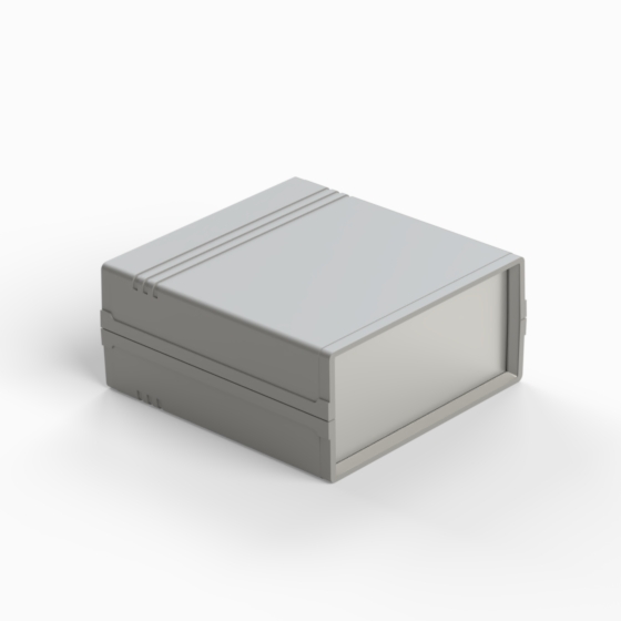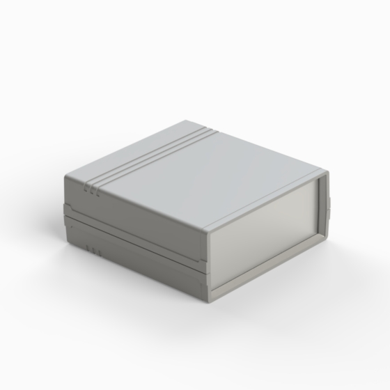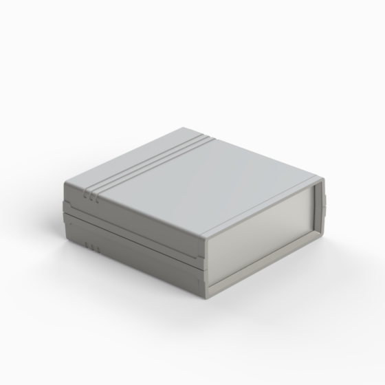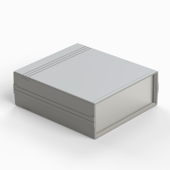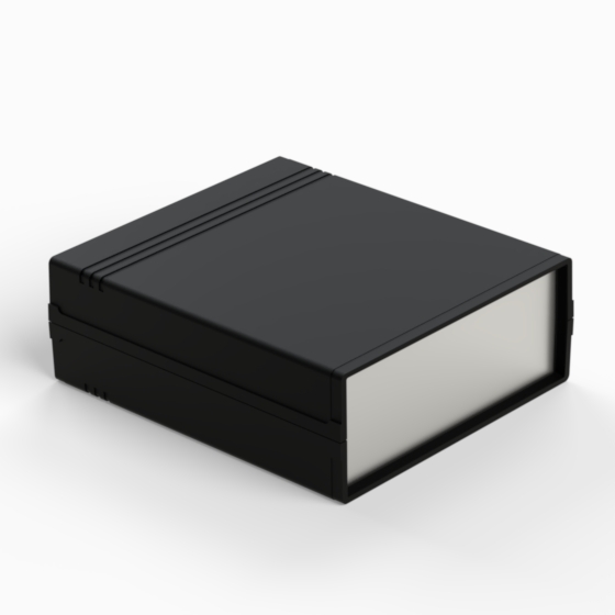 Coffrets en ABS avec surface opaque et deux panneaux en aluminium de 1 mm d’épaisseur. Des guides et des plots internes pour la fixation de circuit imprimé. Surface opaque. Montage par deux vis. Sur demande sont disponibles des panneaux en ABS gris foncé (Mod. PP12, PP22, PP222, PP223, PP233).