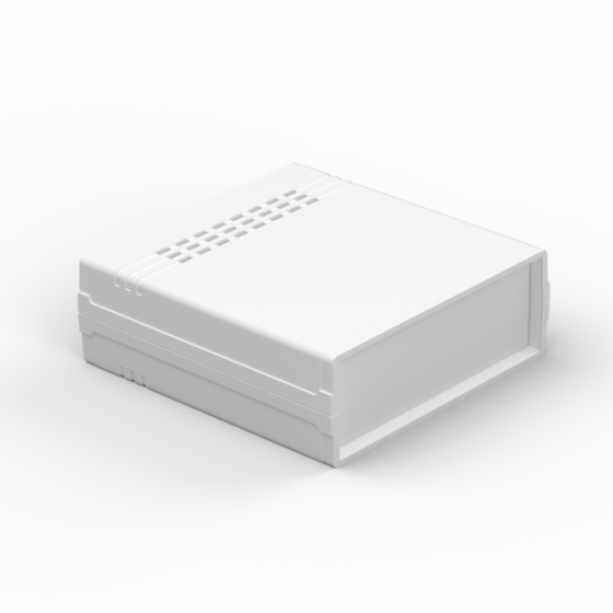 Coffrets en ABS avec surface opaque et deux panneaux en aluminium de 1 mm d’épaisseur. Des guides et des plots internes pour la fixation de circuit imprimé. Surface opaque. Le modèle «CAB-VO» est moulé en ABS autoextinguible, classe V0. Montage par deux vis.