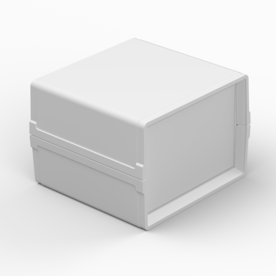 Coffrets de petites dimensions en polystyrène avec panneau avant et arrière. Des guides et des plots internes pour fixer un circuit imprimé. Surface opaque. Montage par deux vis. Sur demande sont disponibles les panneaux en aluminium (AP11, AP12, AP22).