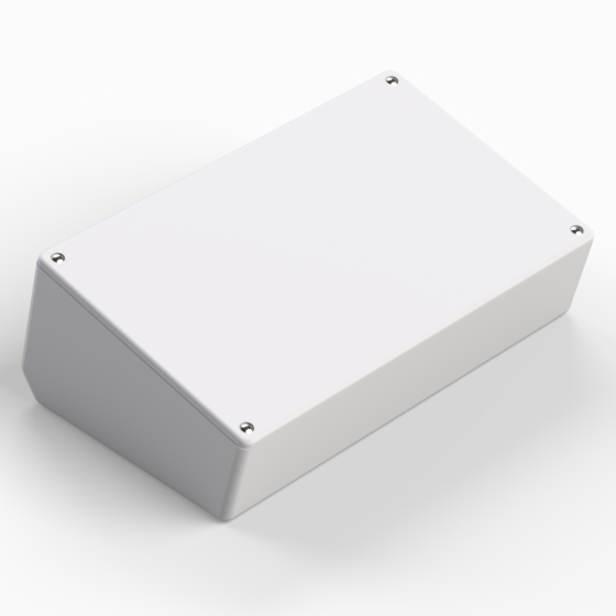 Coffrets en ABS avec panneau. Guides internes et plots pour la fixation d’un circuit imprimé. Angles arrondis et surface lisse. La version «P» est munie d’un panneau supérieur en plastique ABS, incliné à 15°. Montage par quatre vis.