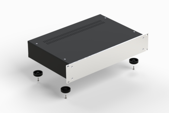 Serie di moderni contenitori da rack 19 pollici con finiture molto accurate. Pannello frontale in alluminio anodizzato di colore argento, coperchio e laterali in acciaio di colore nero. Fori superiori di aerazione. Pannelli rimovibili facilmente. ACCESSORI: Base interna zincata 175x435 mm. (Mod. LEVEL) – Maniglia piatta in alluminio anodizzato colore argento o di colore nero (Mod. FLAT RACK) – Maniglia tonda in acciaio plastificato di colore nero (Mod. ROUND RACK).